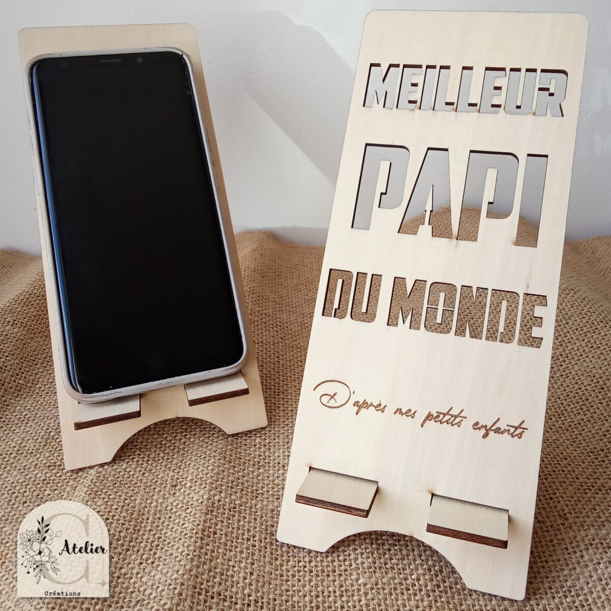 Support téléphone portable “Meilleur Papi” d’après mes petits enfants